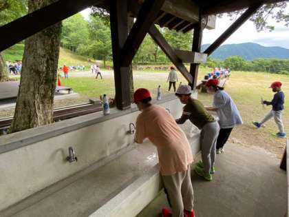 それぞれの班で用具を用意しています!いよいよ飯盒炊爨開始です!