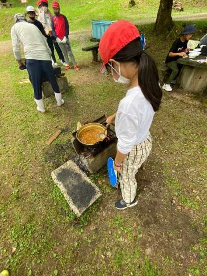 早い班は、カレーのルーを投入しております!