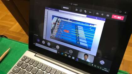 運動場では、映像を見ながら校長先生のお話は聞けませんが、今日は、teamsを使っているので、パラリンピックの動画を見ながら校長先生のお話を聞きました。映像があることで、子どもたちは、イメージを持ちながら話を聞くことができました。