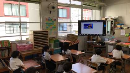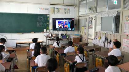 今日は、双方向通信アプリteamsを使って、児童朝会を実施しました。