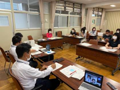 放課後には、教職員が集まって、今日の授業の振り返りを行いました。授業力向上のために研鑽を積んでおります。