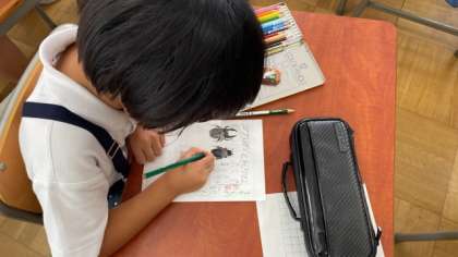 アゲハチョウやカブトムシなどが住んでいるところや飼い方、エサを調べました。しっかしと調べたことを新聞にまとめられていました。