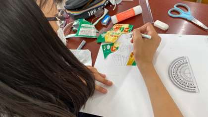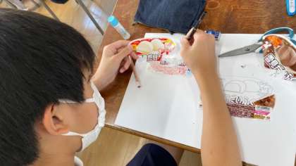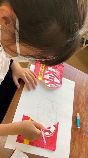 家からお菓子の袋など色んな袋を持ってきて、丁寧に写していました。