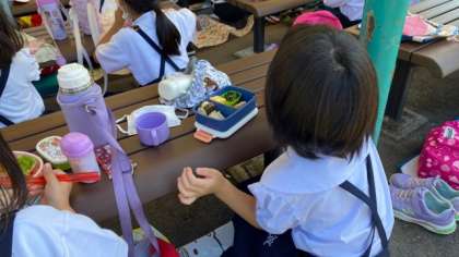 感染症対策のため、おしゃべりをして食べることはできませんが、みんな楽そうにお弁当を食べています!