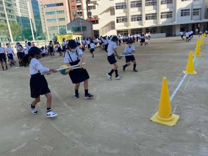 今週の児童集会は「ボールはさみリレー」をしました。ペアで力を合わせ、ボールを落とさないようにがんばっていました。久しぶりの異学年交流だったこともあり、とても楽しそうな子どもたちでした!