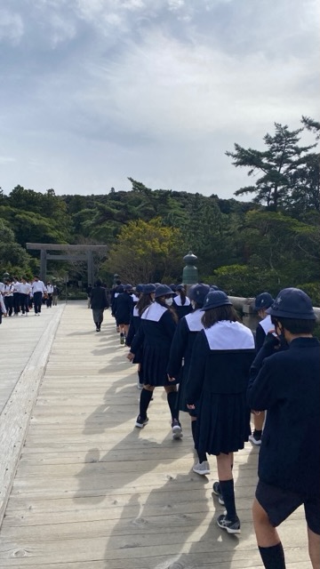 伊勢神宮の境内を見学しています。