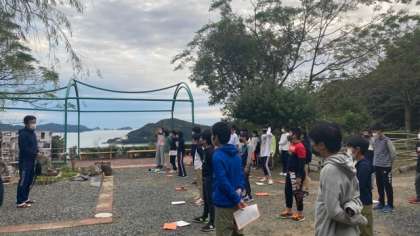 朝の集いをしているところは、とても景色の良いところです。