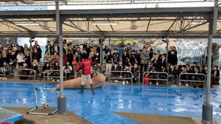 セイウチの腹筋を見せてもらいました。子どもたちは、大喜びでした!