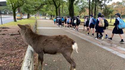やっと鹿に出会えました!!雨上がりのせいか、鹿の数も少ないように感じます。