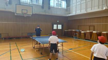 今日は、アテネオリンピック卓球日本代表の新井周さんをお招きして、ご講演や卓球の実技指導をしてくださいました。