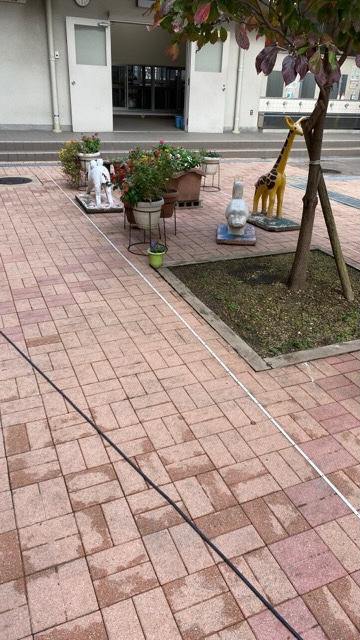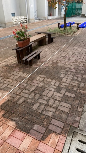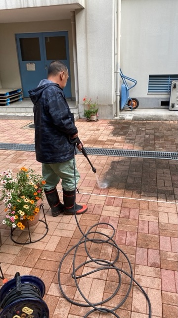 管理作業員さんがタイル一つずつ高圧洗浄機をかけてくださいました。