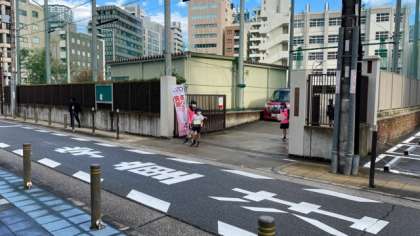 児童の人が気持ちよいあいさつができているか判定をしていました。