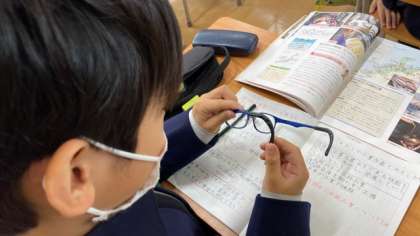 先生から「君たちのメガネはどこで作られているのかな?」という発問から授業がスタートしました。