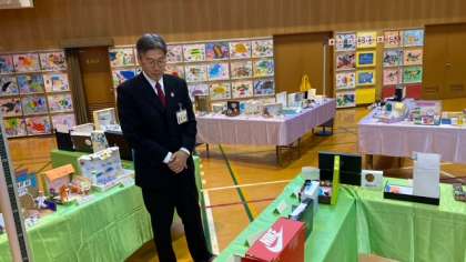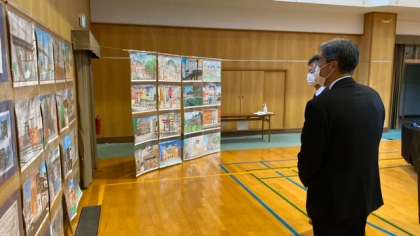 さて、今日は、前田区長に全児童の作品をみていただきました。どの学年の作品もよくできていると褒めていただきました。