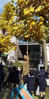 西天満公園に秋見つけに出かけました。サクラやイチョウがきれいに紅葉し、子どもたちは夢中になって落ち葉を集めていました。大きな落ち葉は大人気でした。