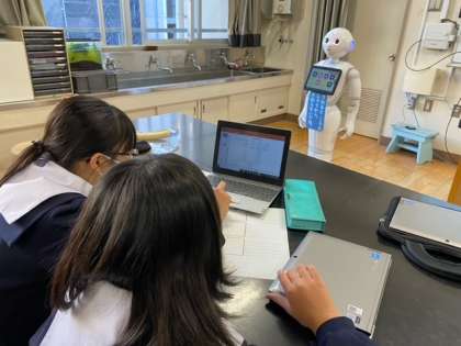 今日は、ペッパーくんを使って学校紹介をするプログラムを組みました。