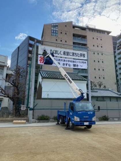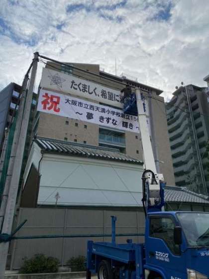 そこで、運動場の防球ネットに横断幕を設置いたしました。創立150周年という記念すべき年を盛り上げていきたいと思います。
