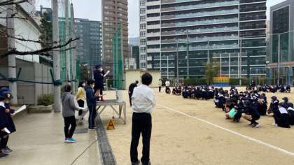 6年生と一緒に遊んだり、縦割り班のメンバーが書いた色紙をプレゼントしたりしました。