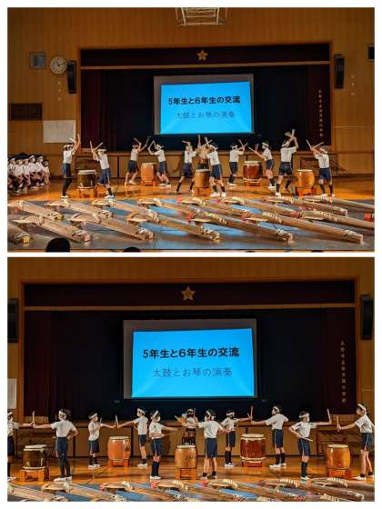 (3月2日)5年生(太鼓)と6年生(お琴)の交流