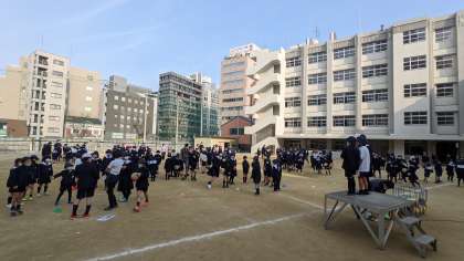 今年度最後の児童集会を思い切り楽しみました。中にはハッスルして滑って転ぶ子も。