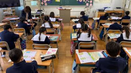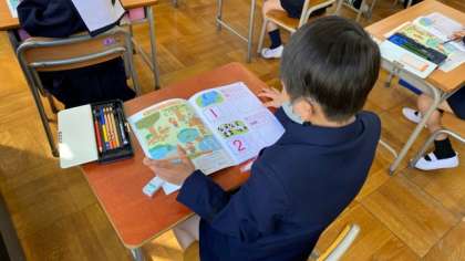 見本を見ながらしっかり書きました。学校のお勉強は、楽しいと言っています!