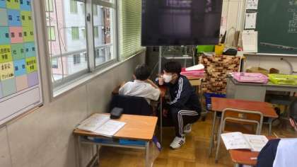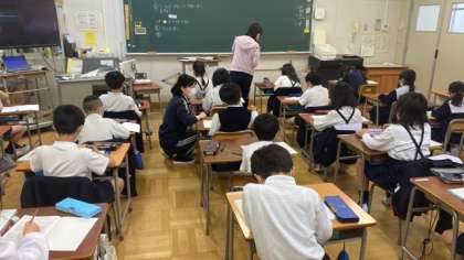 大阪成蹊大学から3名の学生が学校体験活動に来ています。