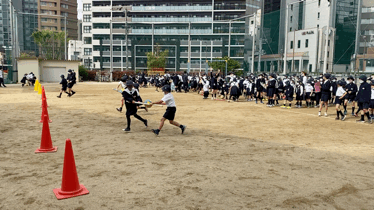今日の児童集会では、たてわり班でボール運びゲームをしました。1年生は、6年生とペアを組んでいっぱい楽しんでいました。