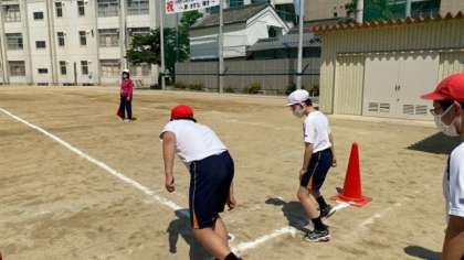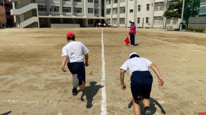 今日は、50メートル走をして、記録を測りました。昨年よりも体が成長した分、体力も向上したでしょうか?保護者の皆さまには、後日、記録用紙をお渡しします。