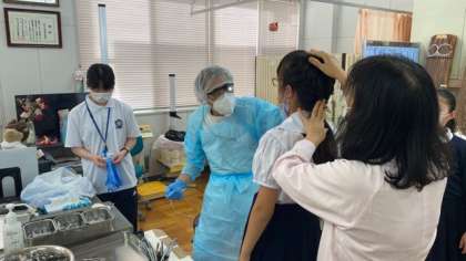 今日は、学校耳鼻科校医の恩地先生に耳鼻科検診をしていただきました。