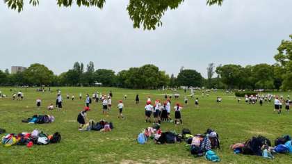 大きな広場で、みんな楽しく遊んでいます。