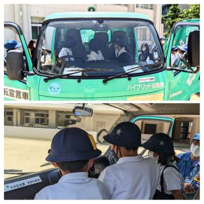 大きなタンスがバリバリと砕かれて車内に入る様子を見たり、運転席に乗せてもらったりと貴重な体験ができました。