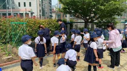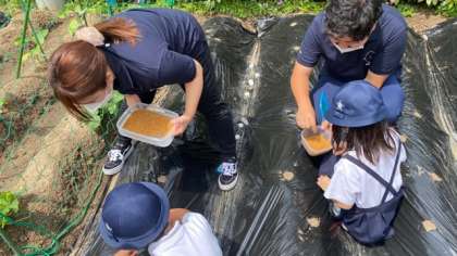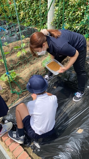 今日は、菅原町にある株式会社 和田萬さんのご協力のもと、学習園に胡麻の種を植えました。