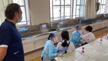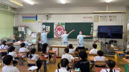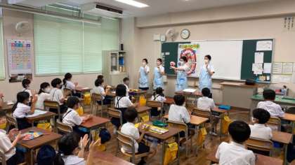 今日は、なにわ歯科衛生専門学校と学校歯科医の中谷先生のご協力をいただき、1年生、2年生、3年生、5年生、6年生にフッ素塗布をしていただきました。