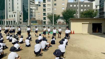 今日は、6年生が行進の見本を見せてくれました。
