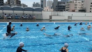 水泳に慣れている子どもたちは、すぐに水慣れをして、たくさん泳いでいました。