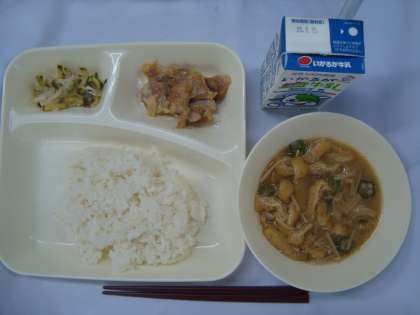 「鶏肉のしょうゆマヨネーズ焼き とうがんのみそ汁 切り干しだいこんのゆずの香あえ ごはん 牛乳」
