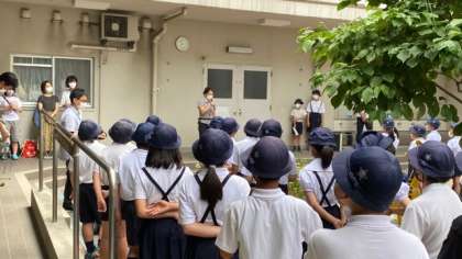 代表児童のあいさつでは、「みんなで協力して楽しい思い出を作りましょう」という言葉がありました。山登りや飯盒炊爨、魚つかみなど楽しみですね!