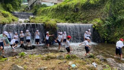 ろ組は、川遊びをして遊んでいます。