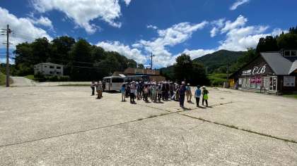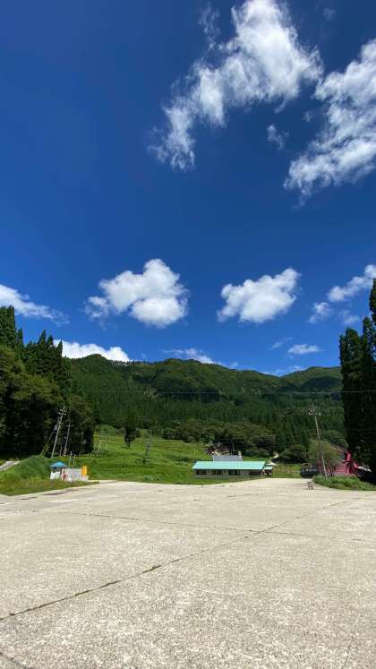 子どもたちは、いい顔してます!青空が広がり、山の緑ともに美しいです。