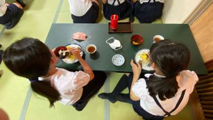 今からお昼ご飯をいただいております。