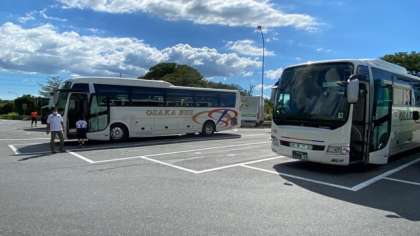 トイレ休憩をしています。ここを出ると後は、学校に到着するのみです。