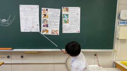 夏休みに自由研究をしてきたことを発表しています。子どもたちも興味深く聞いていました。