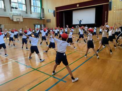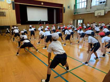 運動会の練習が始まりました。3年生と4年生は一緒に南中ソーランを踊ります。振り付けが難しい部分もありますが、みんなやる気満々!一生懸命に、そして楽しく練習に取り組んでいます。