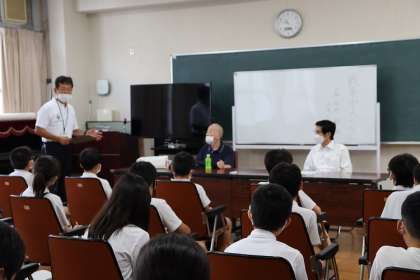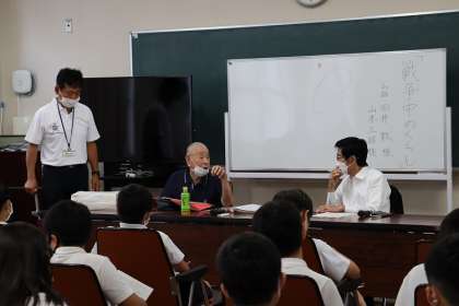 地域の方をお招きし、「戦争中のくらし」について、特に当時の西天満地域の町の様子や集団疎開、学童疎開など、体験されたことをわかりやすくお話していただきました。