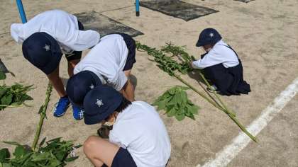 今日は、待ちに待ったゴマの収穫をしました。和田萬さんにも、お手伝いいただき、たくさんのゴマを収穫することができました!
