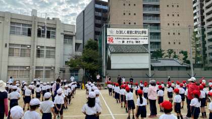 1年生〜3年生は、小学校生活初めての開会式、応援合戦です!