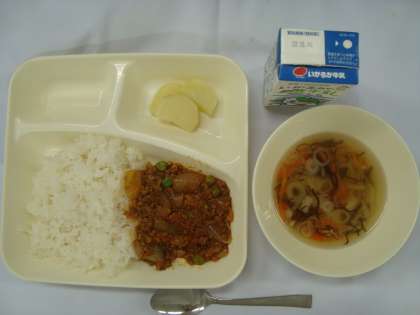 「タコライス もずくのスープ 焼きじゃが 牛乳」