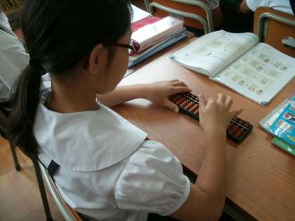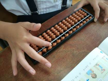3年生で習ったそろばんを、4年生でも少しやりました。久しぶりだったので、やり方を忘れていたところもあったけれど、玉をはじいているうちに思い出すことができました。