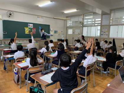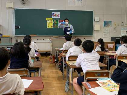 社会科で「店ではたらく人びとの仕事」という学習をしています。そこで、スーパーマーケットのライフで働く方をゲストティーチャーとしてお招きし、授業をしていただきました。働く人のこだわりやバックヤードのこと等、教科書だけではわからない、様々なことを教えていただきました。