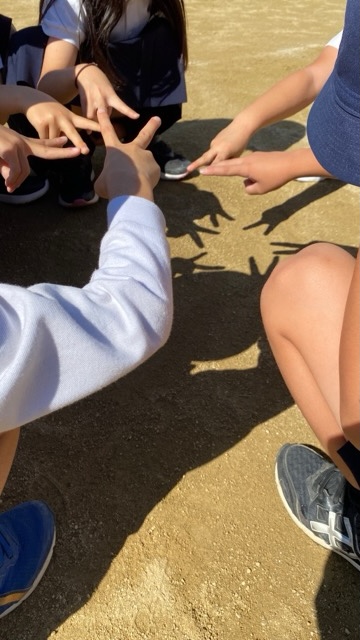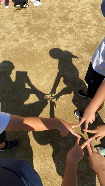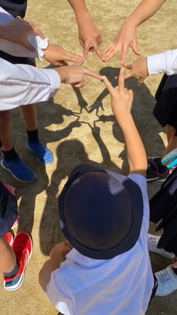「かげと太陽」の学習で、かげを使って地面に星を描きました!自分のかげに重なってしまい、なかなかうまくできなかったですが、最後は、どのグループも星を作ることができました。